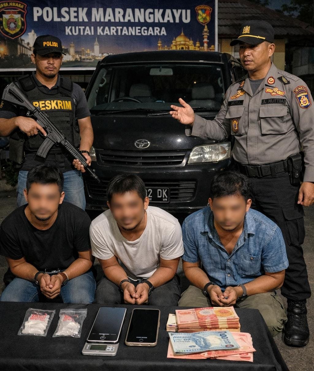 BONTANG – Di tengah suasana bulan suci Ramadhan, aparat kepolisian berhasil mengungkap dugaan penyalahgunaan dan peredaran narkotika di wilayah Kecamatan Marangkayu. Tiga pria diamankan Unit Reskrim Polsek Marangkayu pada Minggu (1/3/2026) sekitar pukul 20.00 Wita.