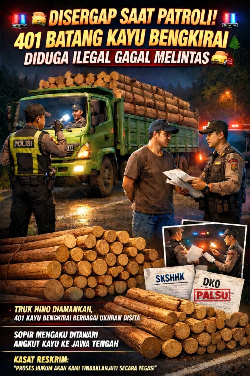 Pengungkapan bermula dari patroli rutin petugas yang mencurigai sebuah truk Hino berwarna hijau membawa muatan berat. Setelah dihentikan dan diperiksa, ditemukan 401 batang kayu jenis bengkirai dengan berbagai ukuran di dalam bak truk bernomor polisi DC 8952 XJ.
